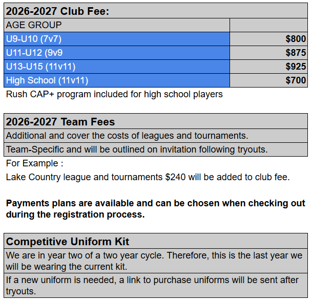 2026-27 Competitive Player Fees
